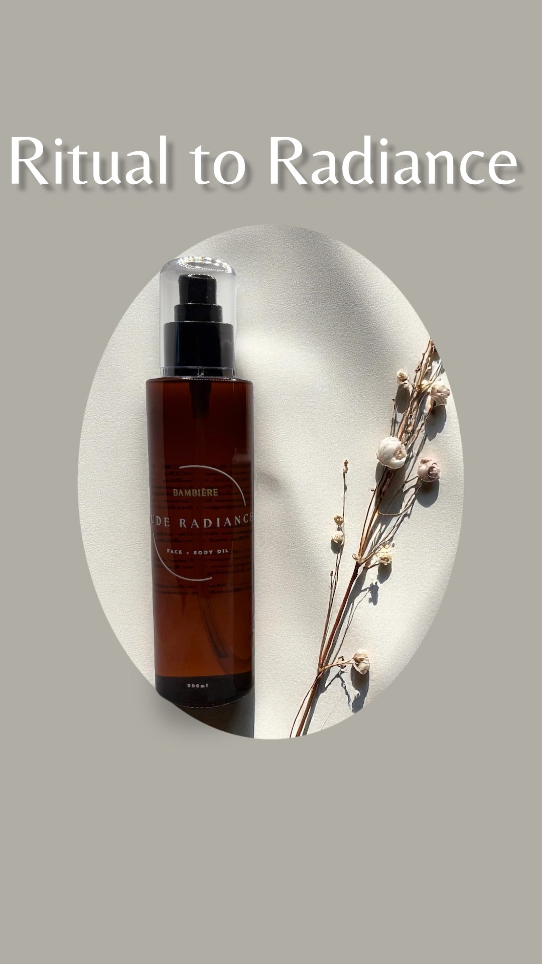 - Nude Radiance Oil (30ml) – Seals in moisture for a soft, glowing finish