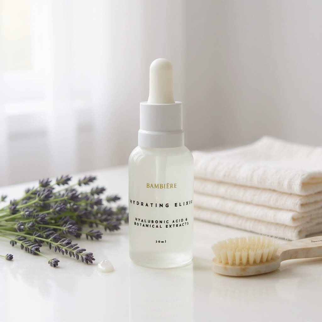 Hydrating Elixir with Hyaluronic Acid is Bambière’s essential daily serum for supple, dewy skin. Formulated with a blend of multi-weight Hyaluronic Acid molecules, it delivers moisture on multiple levels — instantly replenishing surface hydration while helping to lock in long-term moisture for a soft, radiant complexion.