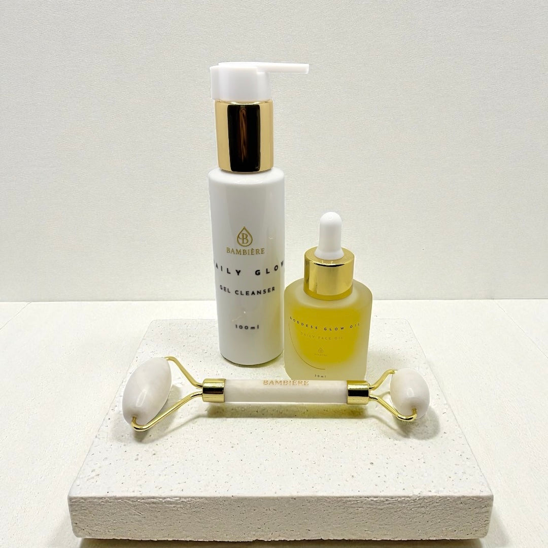 - Daily Glow Gel Cleanser (100ml) – Gentle, refreshing cleanser to purify and balance without stripping
